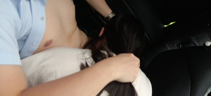 这时候,车上的四个人没人再说话,只有我很不淡定地,默默操控着车子,听着后面单男发出野兽一样的低吼,以及前面单男被老婆吃jj得死去活来,欲仙欲死的神情,以及连续低沉的一声声啪啪啪。