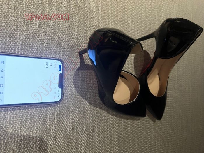 身材真性感,黑丝+黑色侧空漆皮红底高跟鞋,支持!